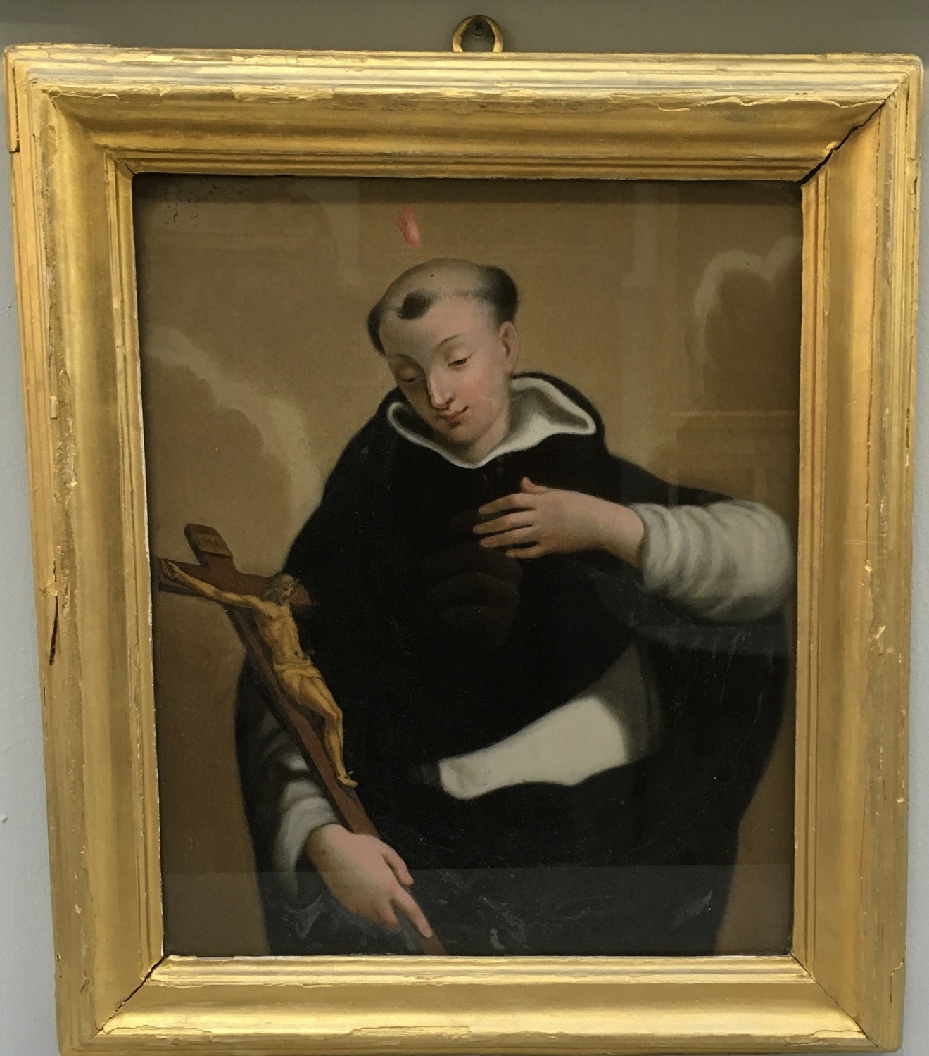Ignoto secolo XVIII "Sant'Antonio" verre peint (cm 36x29) In cornice coeva (difetti)