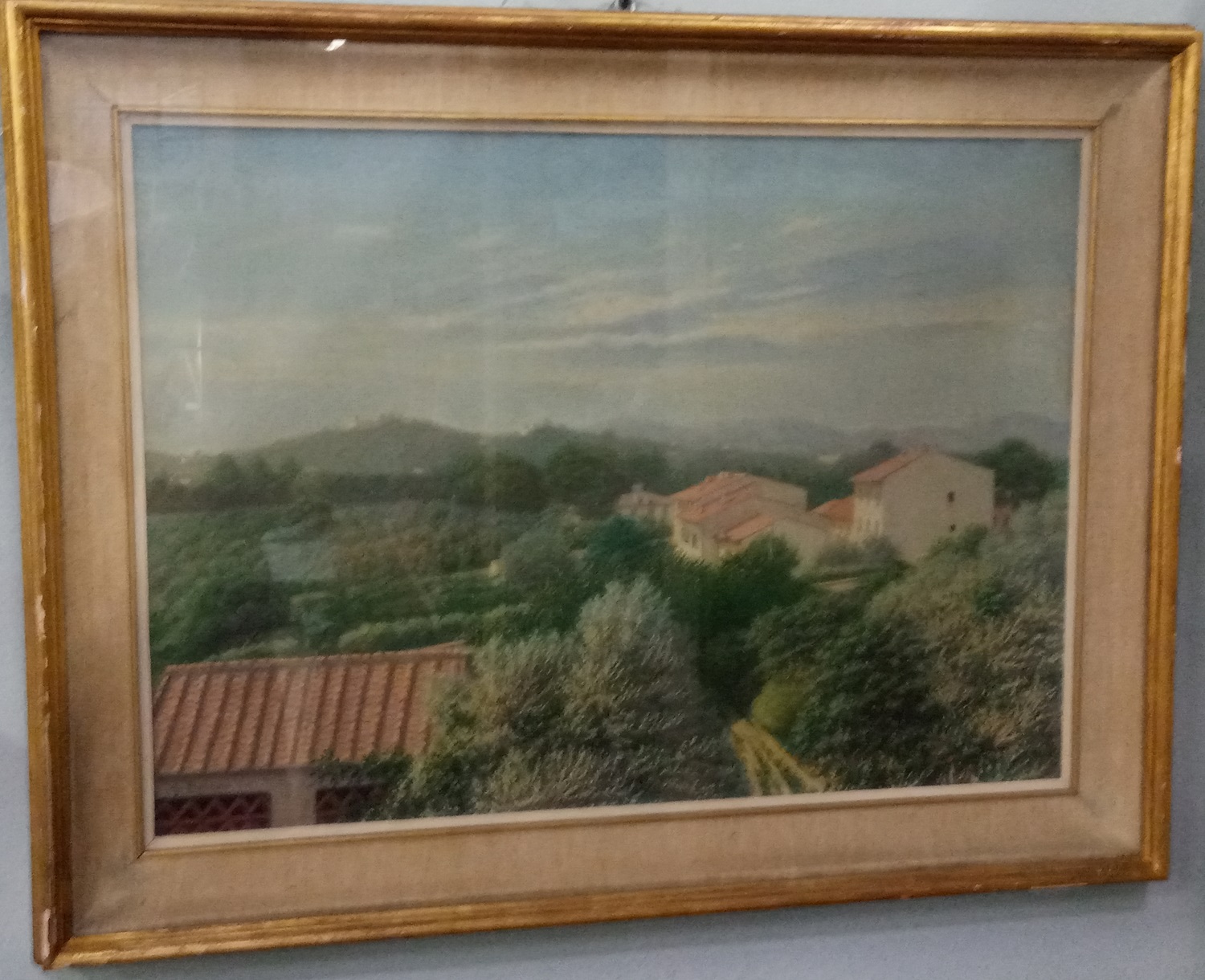 "Paesaggio con case" olio su tela (cm 49x68) Firmato in basso a sinistra. In cornice