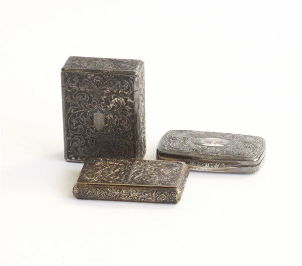 Lotto composto da tre tabacchiere in argento, una con miniatura smaltata (g 260