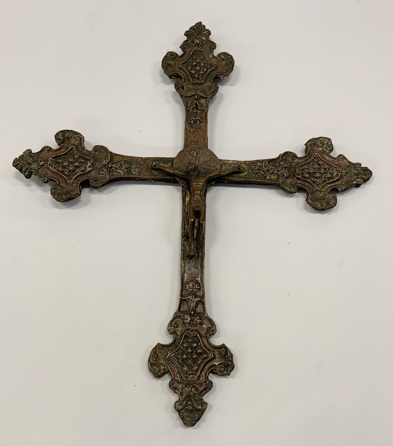 Arte del secolo XIX "Cristo crocifisso" scultura in rame (h. cm 43) (difetti)