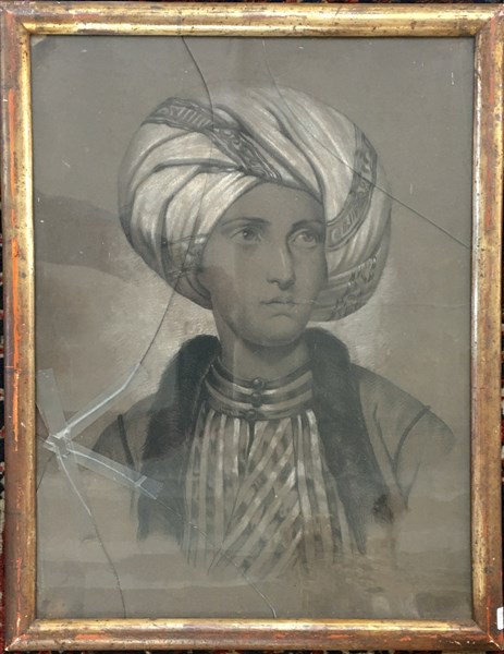Ignoto del secolo XIX "Giovane con turbante" carboncino e gessetto bianco su ca