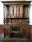 Credenza neorinascimentale in legno intagliato, parte inferiore a due ante, vano e anta a vetro, parte superiore a vani e due ante centrali, montanti torniti sorretti da figure fantastiche a tutto tondo (cm 200x260x62 ca.) (difetti)
