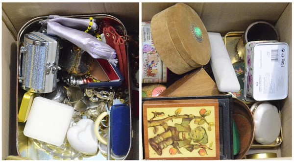 Lotto composto da due scatole contenenti numerosi oggetti di diverso usa e fattura (difetti)