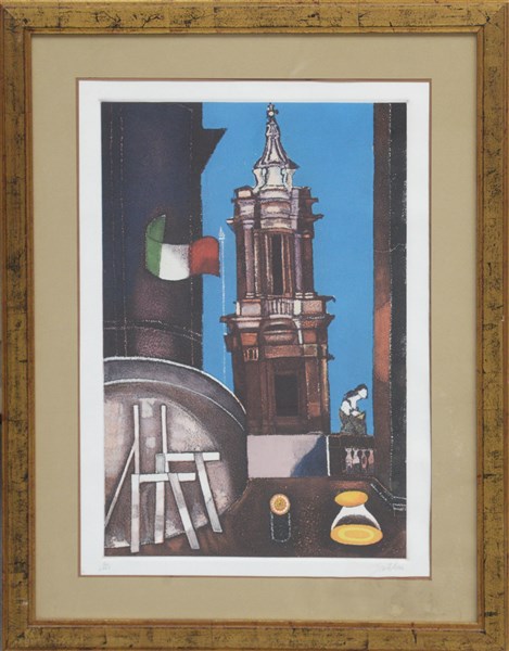 Lotto 3234 | Franco Gentilini "Senza titolo" acquaforte e acquatinta a colori (lastra cm 62x