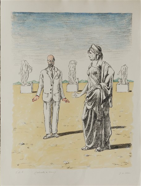 Giorgio de Chirico "Il Filosofo e la Musa" 1971 litografia a colori - esemplare
