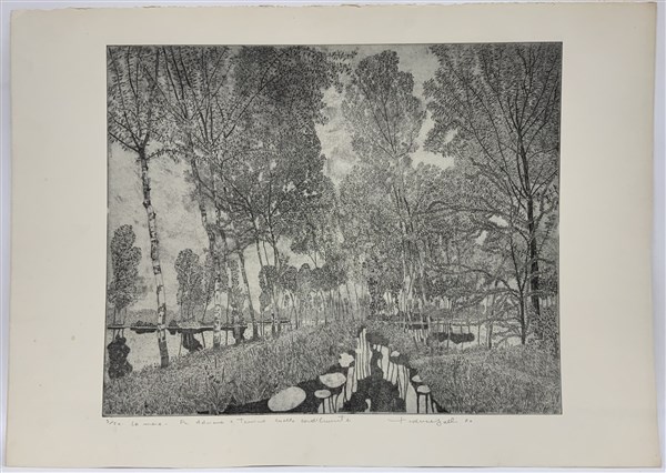 Lotto 3281 | Federica Galli "Le risaie" 1970 acquaforte (lastra cm 40x49,5; foglio cm 49,5x69