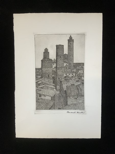 Benvenuto Disertori "San Gimignano" 1917 - 1918 acquaforte e bulino (lastra cm 3