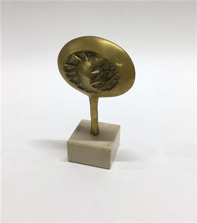 Firma indecifrata "Senza titolo" 1975 Scultura-multiplo in bronzo dorato su base