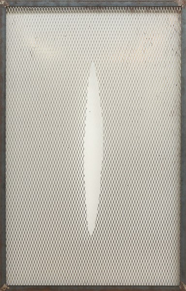 scultura- multiplo in 3 esemplari, realizzata in rete metallica e cornice in ferro