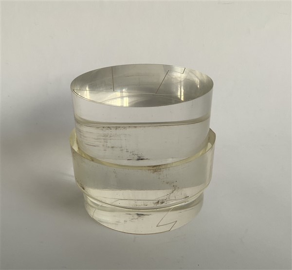 Giuliana Balice "Senza titolo" 1969 scultura cilindrica in perspex h cm 9; diam,