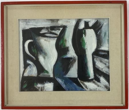 Firma indecifrata "Senza titolo" 1963 olio su tela cm 40x50 firmata e datata in