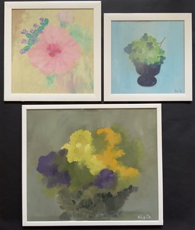 Lotto composto da da tre dipinti raffiguranti nature morte, di misure e tecniche diverse, due firmati.