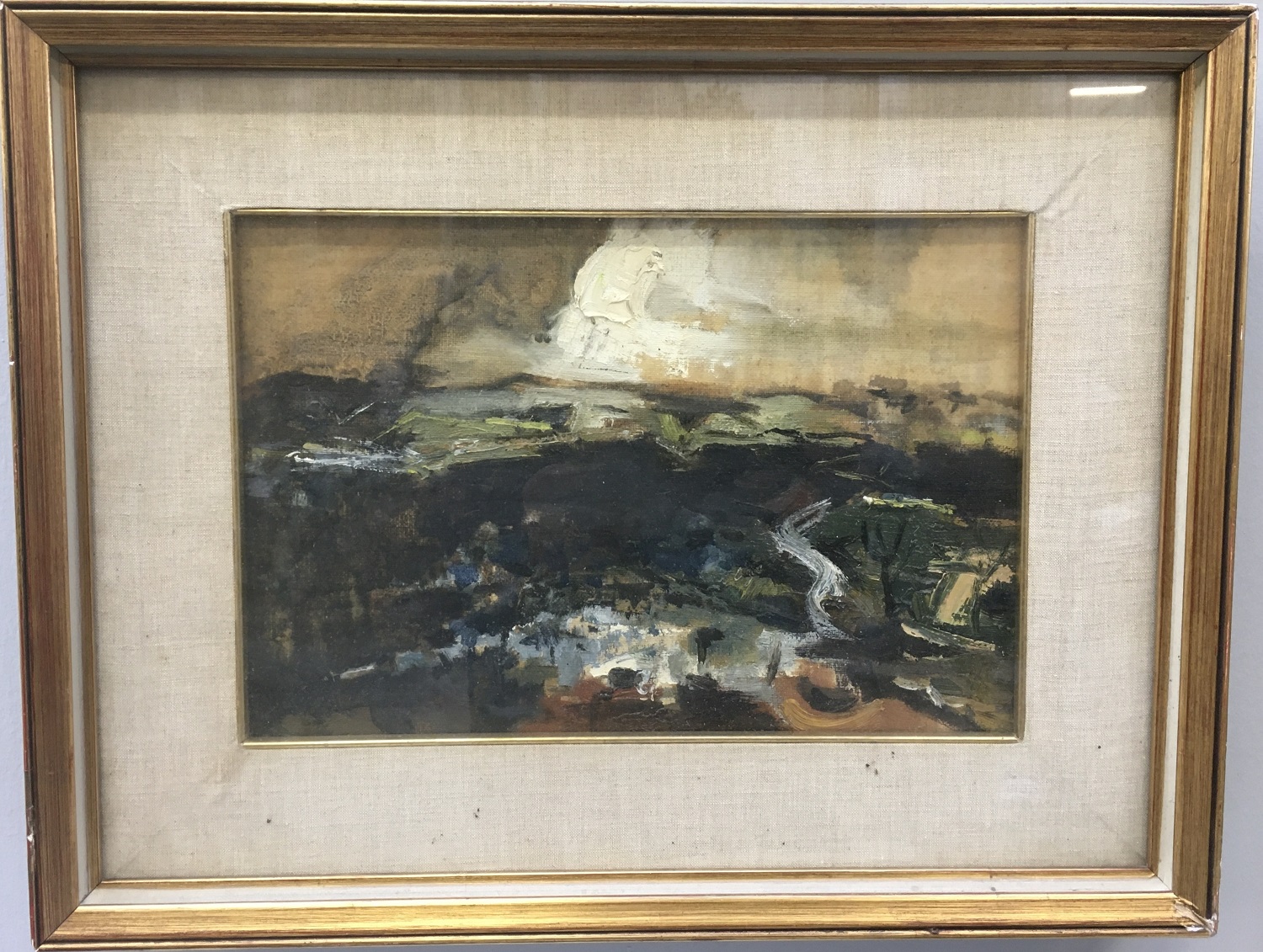 Ignoto "Paesaggio" 1961 olio su tela cm 25x35 datato e iscritto al retro. In cor
