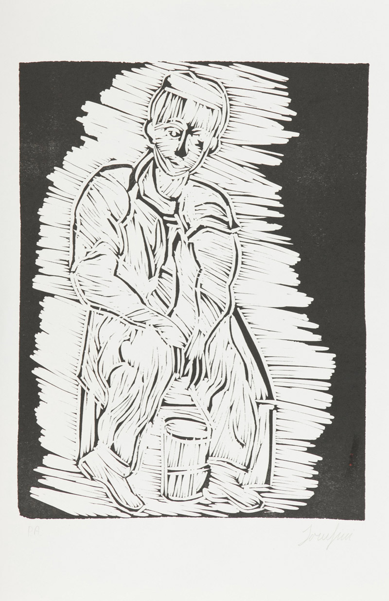 Giuseppe Serafini Lotto unico di due Opere - "Volto", Xilografia di cm. 30x20, su carta di cm. 50x35, es. 37/50, firma in basso a destra, tiratura in basso a sinistra; - "Figura", Xilografia di cm. 40x30,5, su carta di cm. 55x37, es. P.A., firmato in basso a destra.