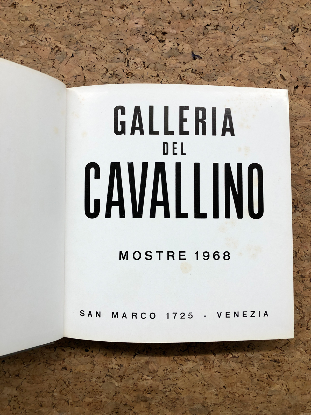 Raccolta di cataloghi originali, rilegati editorialmente, pubblicati in occasione delle mostre allestite presso la Galleria del Cavallino, Venezia, dal 9 Gennaio 1968 al 15 Gennaio 1969 (dalla 677a alla 698a Mostra)