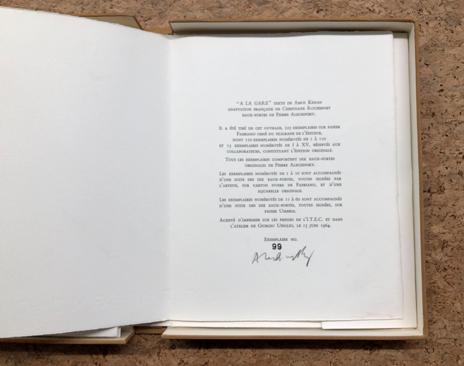 Libro d'arte con testi di Amos Kenan, originariamente composto da 10 acqueforti originali a colori di Pierre Alechinsky