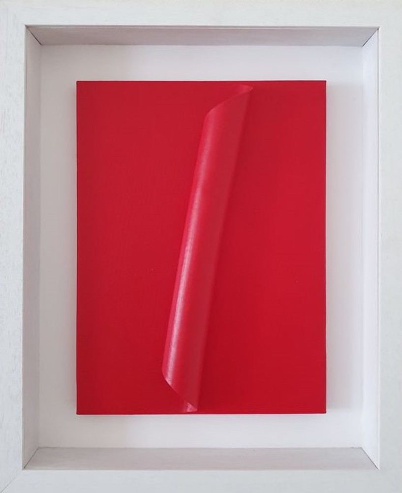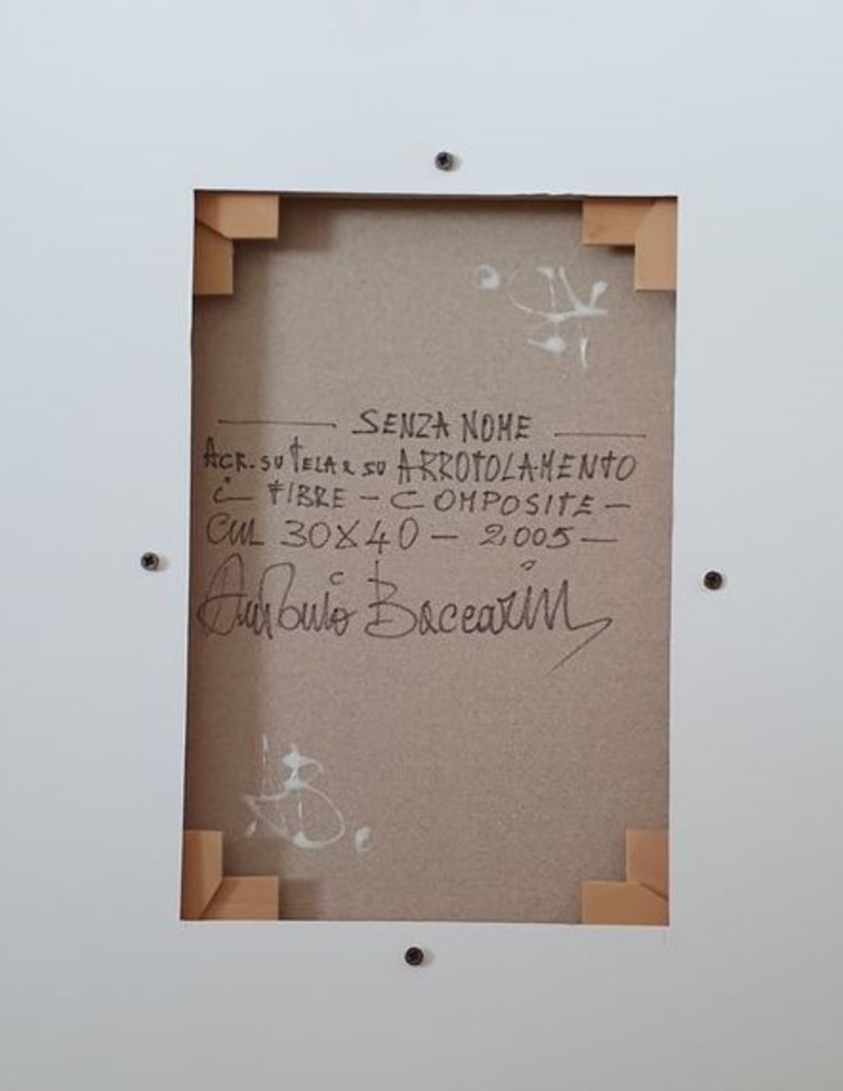 Arrotolamento di fibre composite e acrilico su tela 30x40 cm. Firma titolo ed anno al retro. Autentica dell'artista su fotografia.