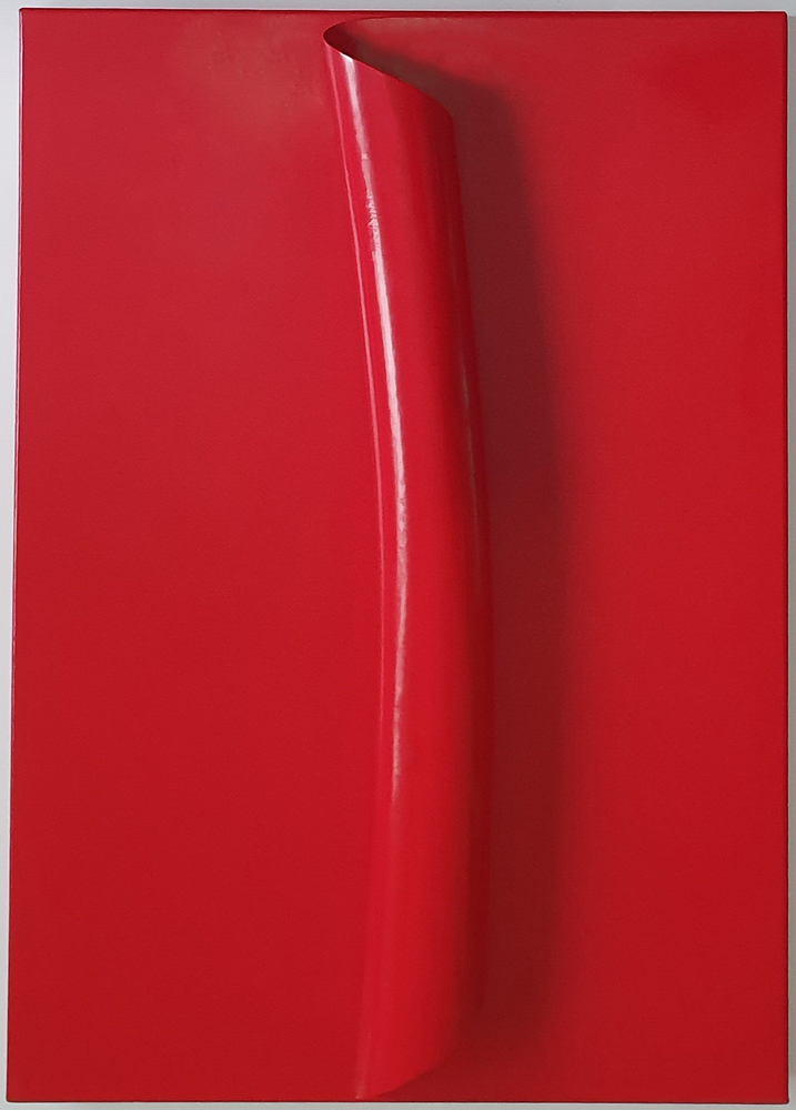 Arrotolamento di fibre di vetro e acrilico su tela 50x70 cm. Firma, titolo ed anno al retro. Autentica dell'artista su fotografia.