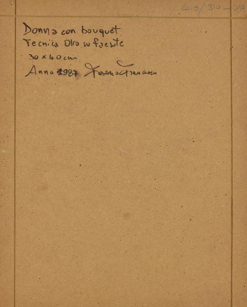 Francesco Fasano DONNA CON BOUQUET olio su faesite, cm 40x30 sul retro:...