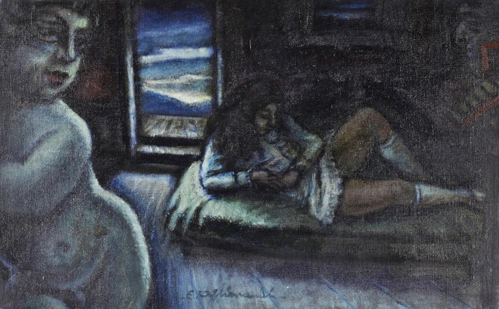 Enrico Allimandi BIMBA IN POSA olio su tela, cm 38x61 sul fronte: firma...