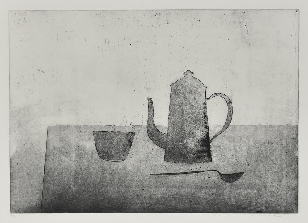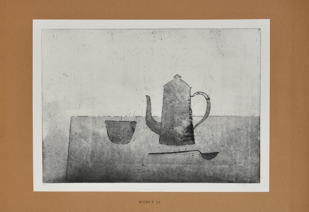 - NATURA MORTA, acquaforte su carta, battuta cm 34x49,5; es. prova d'autore; firma