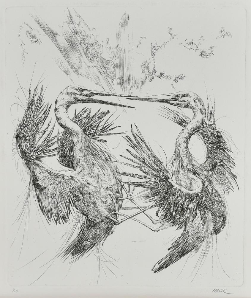 - CICOGNE, acquaforte su carta, battuta cm 35x29; es. prova d'autore; firma