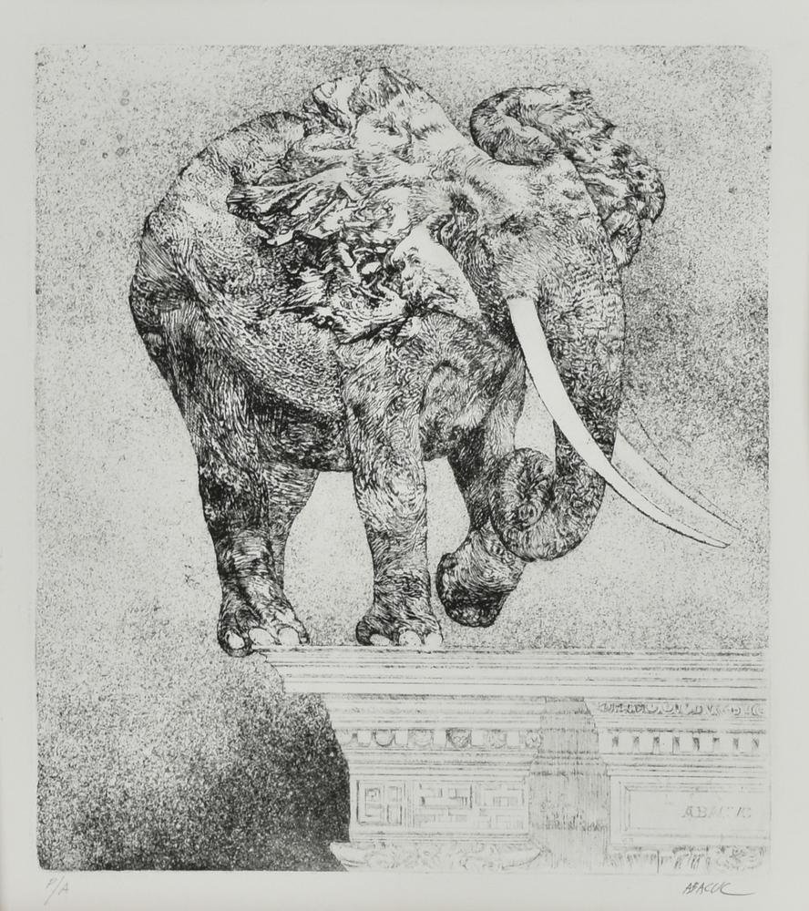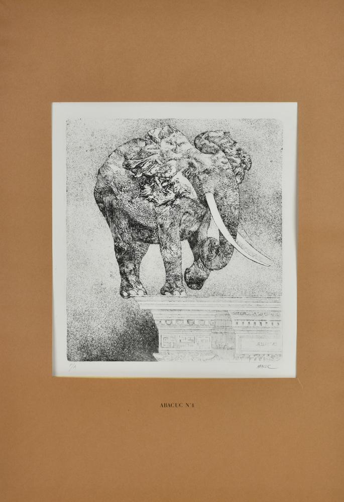 - ELEFANTE, acquaforte su carta, battuta cm 34x29,8; es. prova d'autore; firma