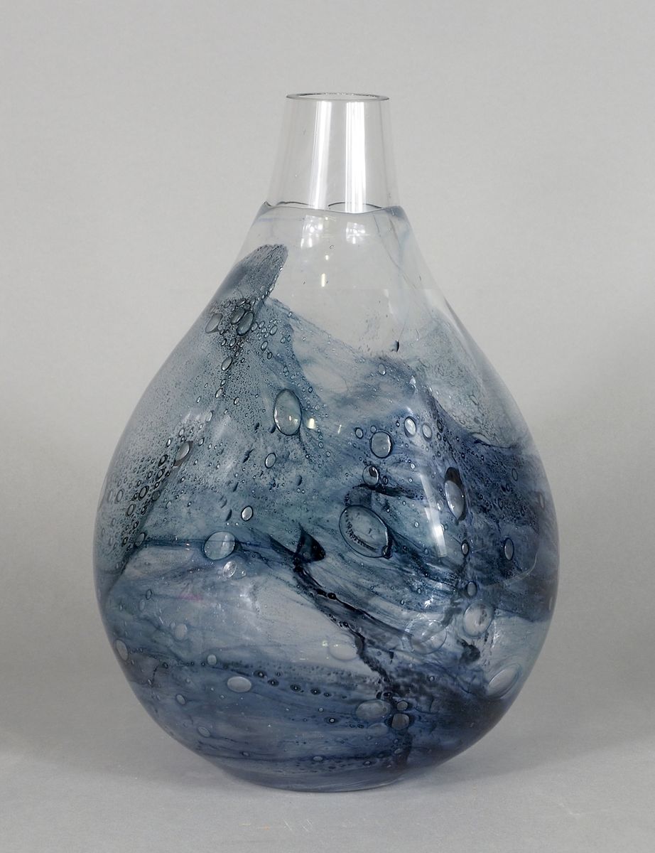 Vaso in vetro decorato a bolle d'aria. Disegno di E. Englund. Etichetta sotto la base. H. cm. 35.