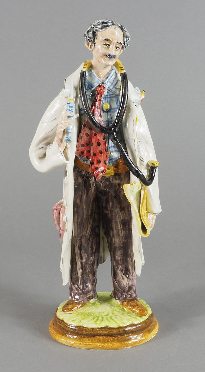 F.lli Soldano Sciacca Figura di medico in ceramica policroma. H. cm. 30.