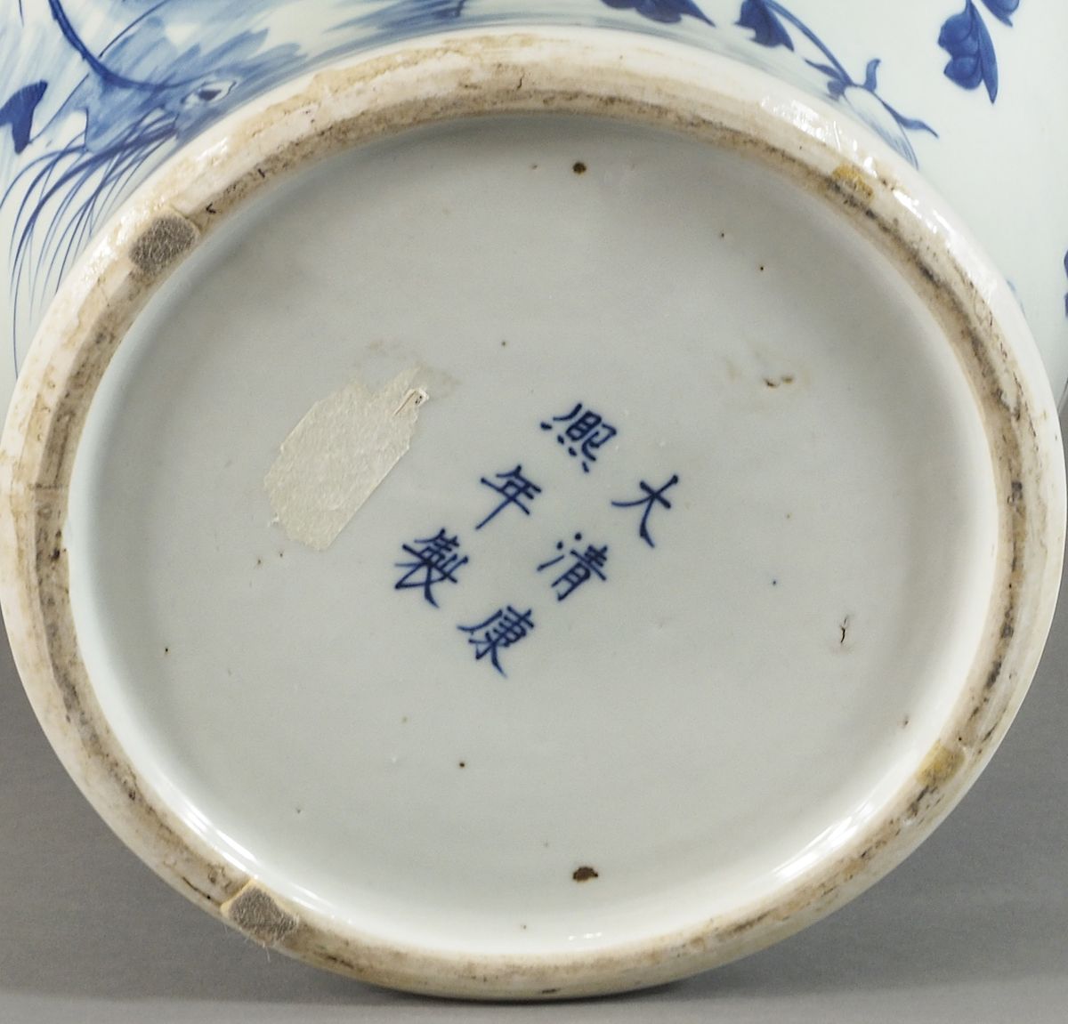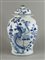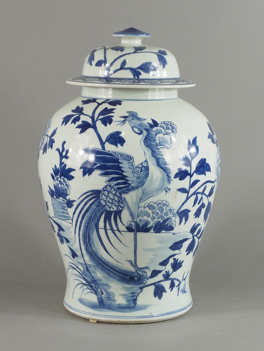 Vaso con coperchio in porcellana decorato a motivi orientali. H. cm. 45.