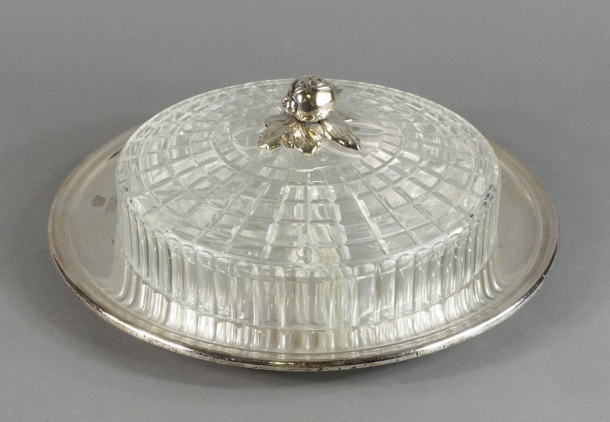 Antipastiera in metallo e cristallo con stemma Italia.