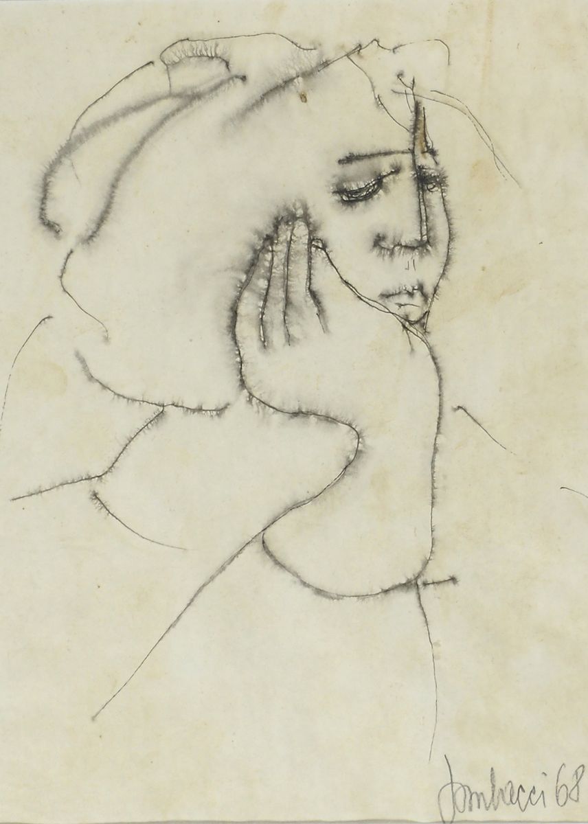 Alice Gombacci Monfalcone 1925 "Volto femminile" cm. 28x20 - china su carta...