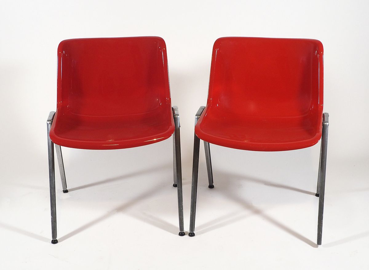 Lotto di 4 sedie modello Modus con seduta in materiale plastico rosso e base in metallo e alluminio. Disegno di O. Borsani.
