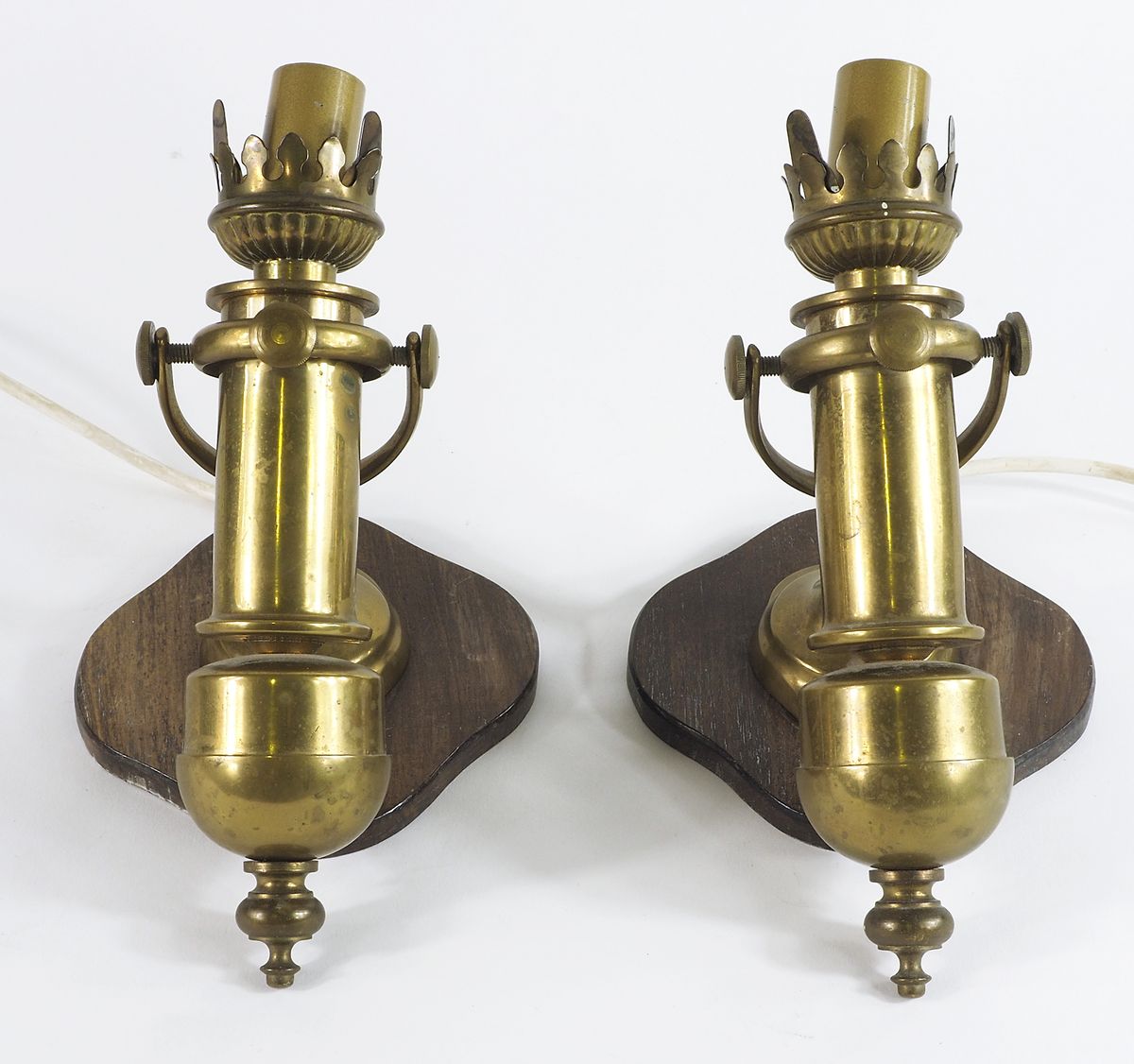 Coppia di appliques basqualanti in ottone da bordo.