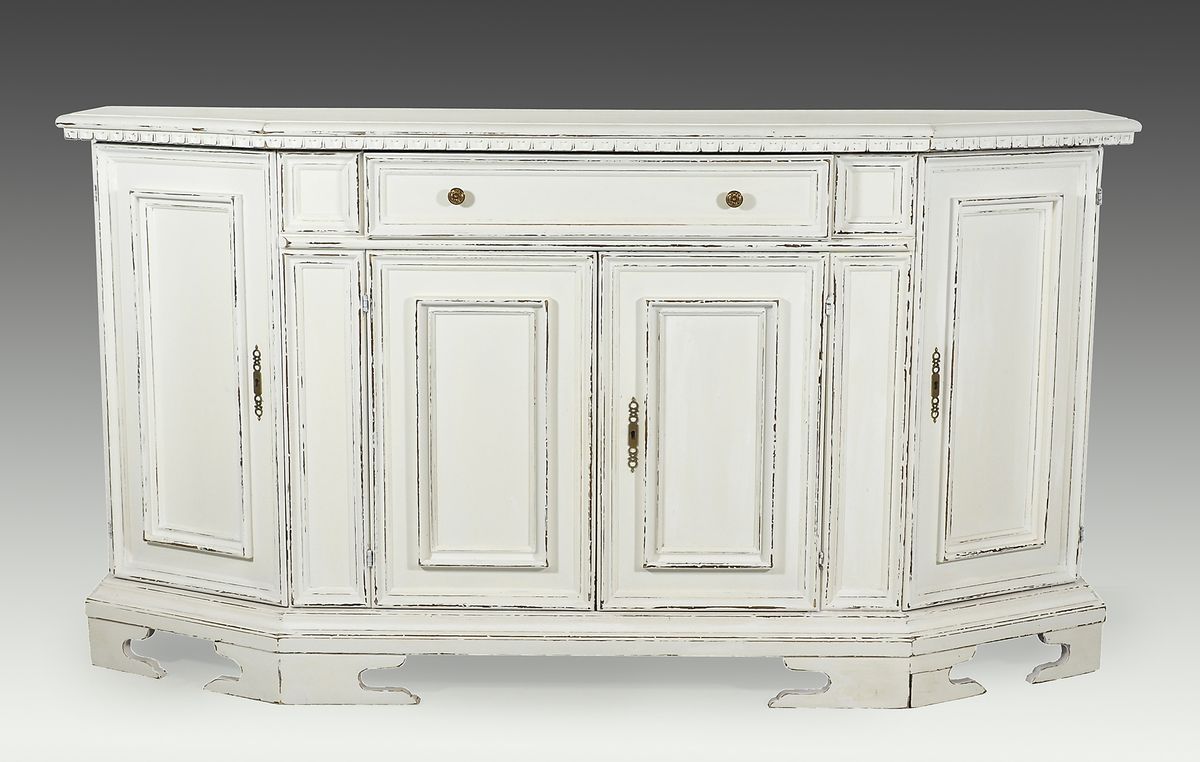 Credenza scantonata in legno dipinto bianco a 4 ante e 4 cassetti. cm....
