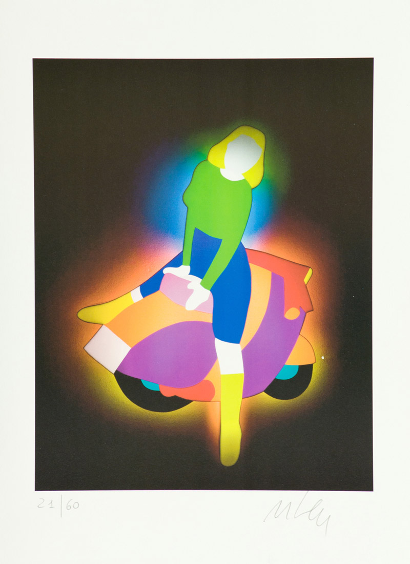 Marco Lodola Lotto unico di due Opere - "Vespa", Litografia su carta, cm. 34x48, es. 28/70, firma in basso a destra, tiratura in basso a sinistra; - "Vespa", Litografia su carta, cm. 48x34, es. 21/60, firma in basso a destra, tiratura in basso a sinistra.