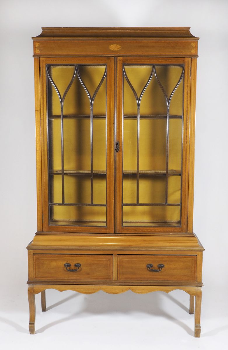 Vetrina in legno a 2 ante a vetri e 2 cassetti nella parte inferiore. cm. 178x105x336. (un vetro rotto).