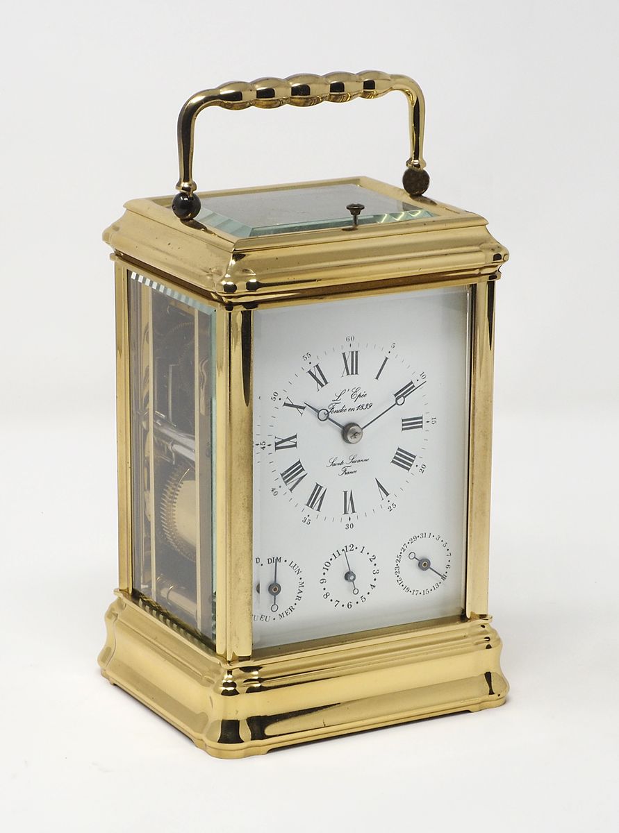 L'Epee: orologio da tavolo in ottone dorato e movimento a vista. Firmato...