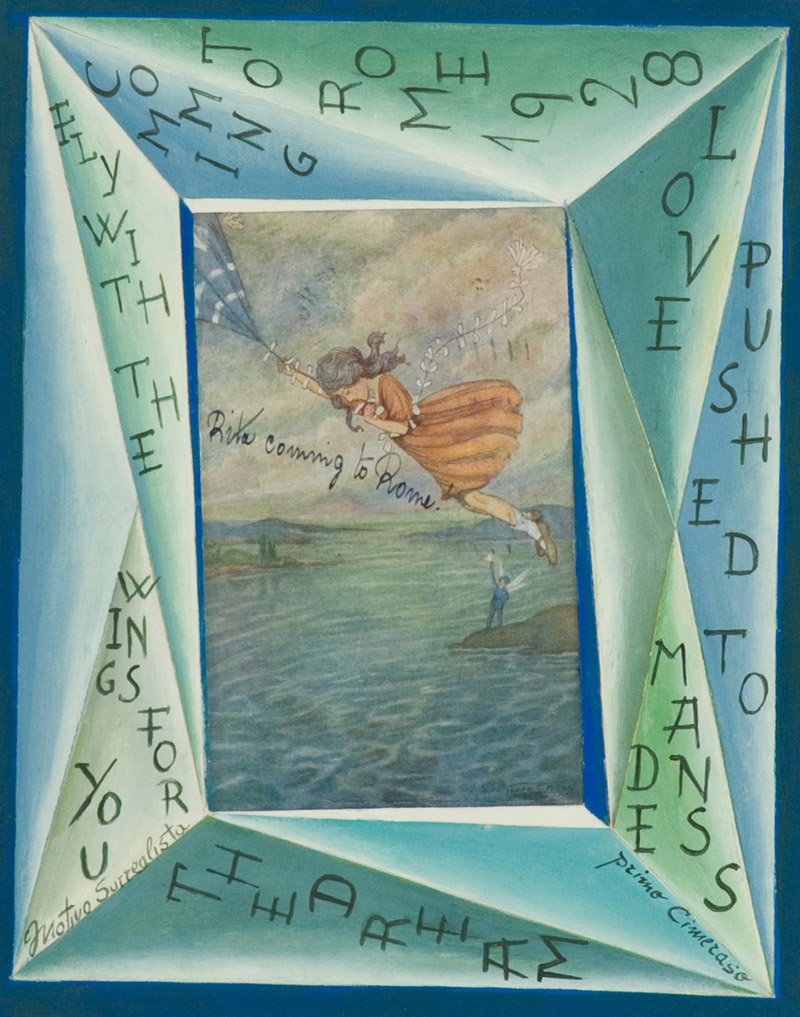 Primo Cimeraso Rita coming to Rome Tecnica mista e collage su cartoncino, cm. 23,5x18,5 Firmato in basso a destra.