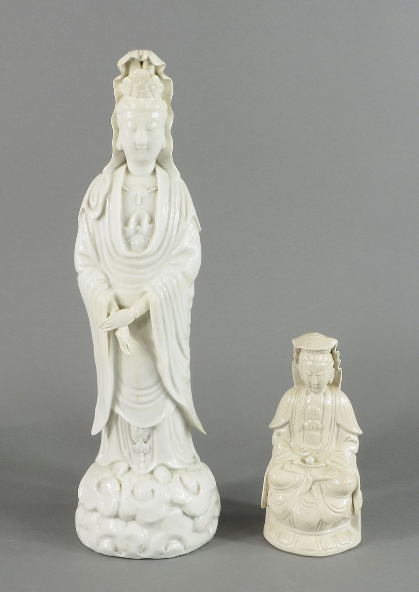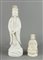 Lotto di 2 sculture orientali in ceramica smaltata bianca. H. max cm. 48.