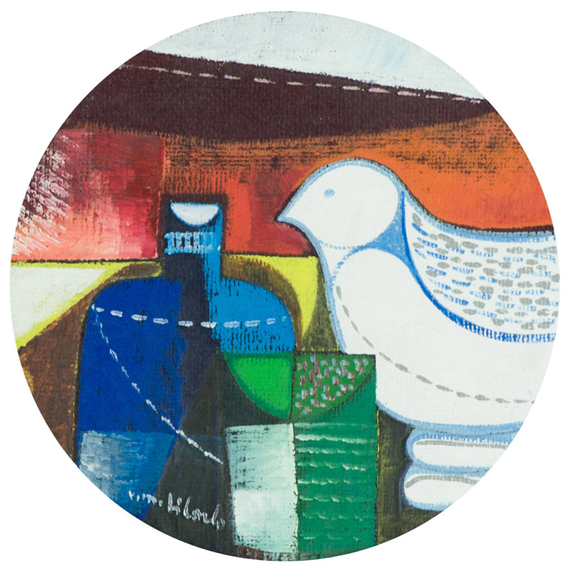 Vittorio Maria Di Carlo Natura morta, 1979 Olio su tela ovale, diametro cm. 30 Firmato in basso a sinistra. Sul verso: etichetta di Garanzia e provenienza "Galleria d'Arte L'Idea", Rovigo, con descrizione.