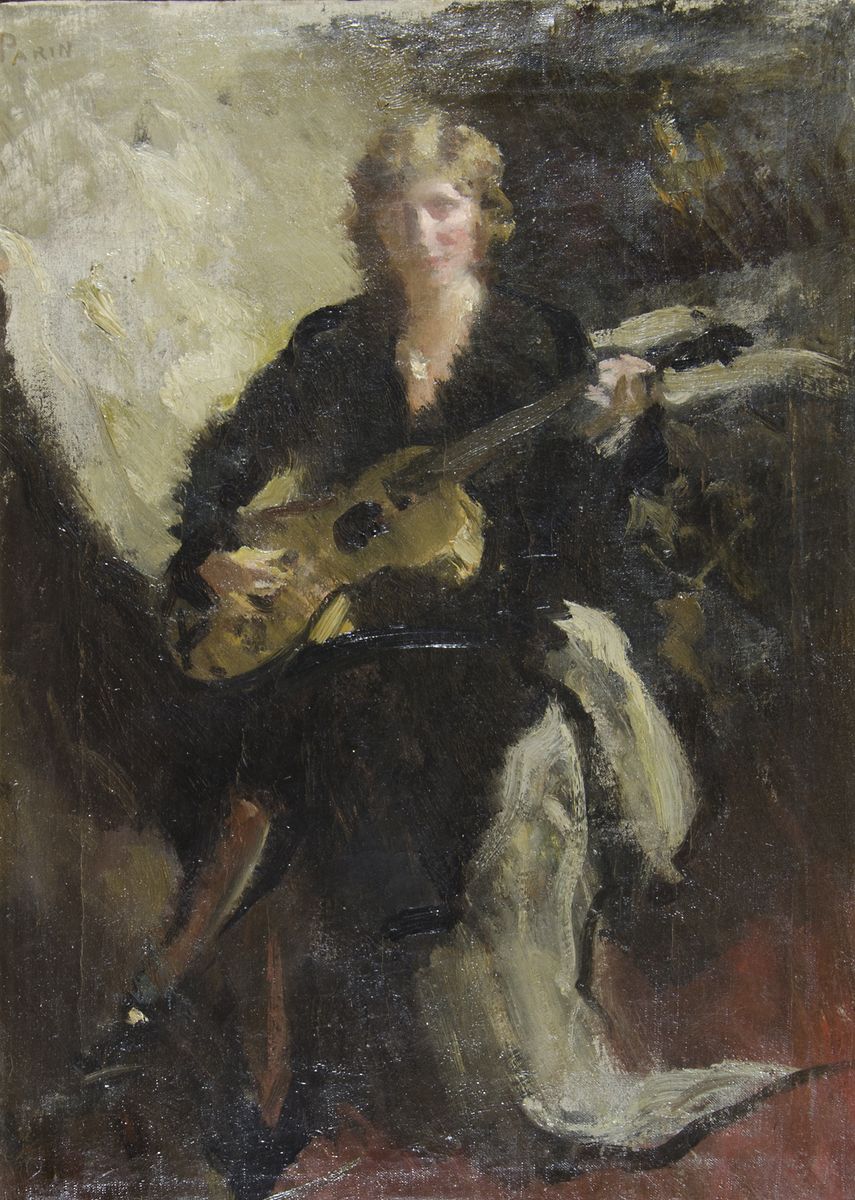 Gino Parin Trieste 1876 Dachau 1944 "Donna con chitarra" cm. 70x50 - olio su...