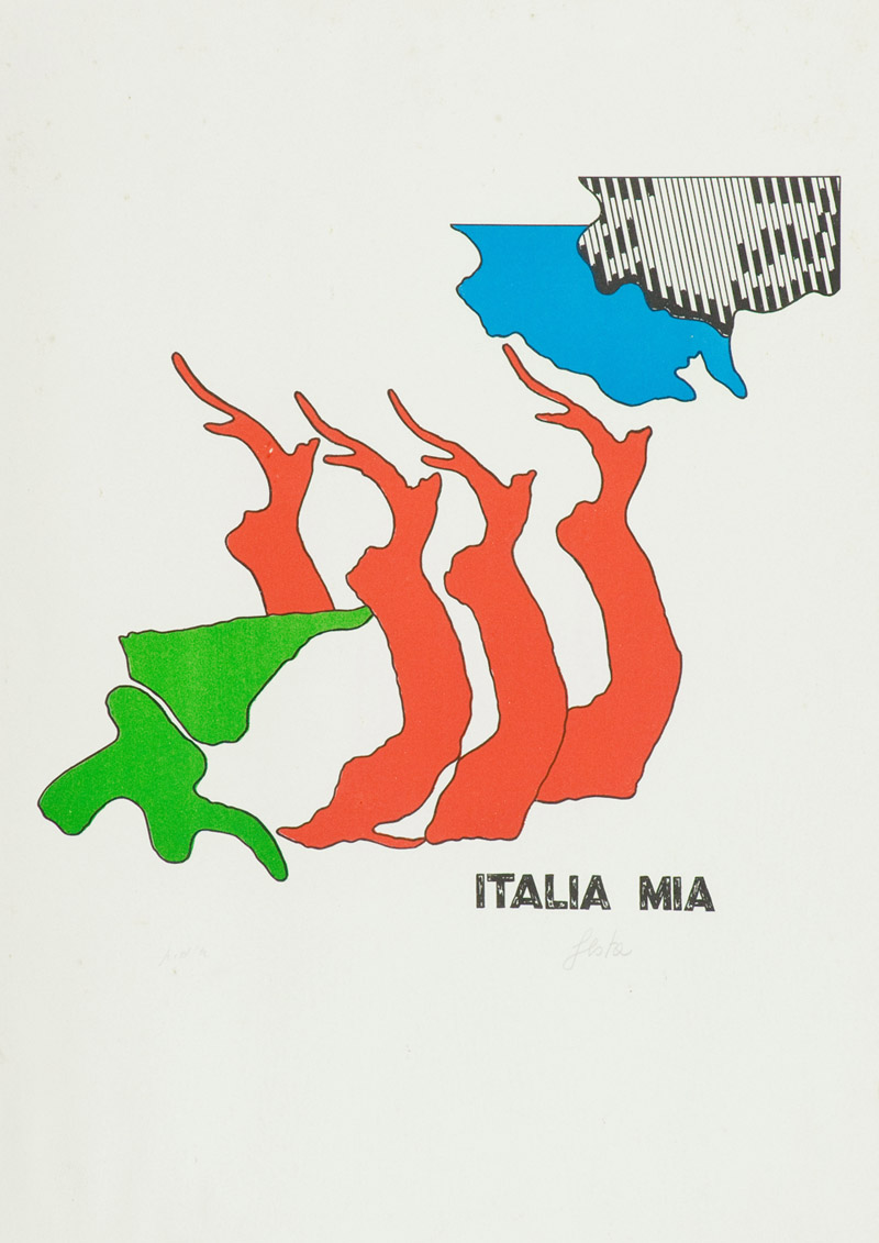Tano Festa Italia mia Litografia su carta, cm. 70x50, es. P.A. La carta presenta lievi fioriture. Firmato in basso a destra.