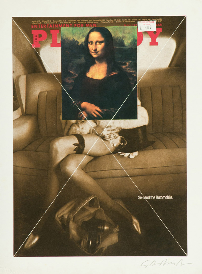 Pietro Gallina Gioconda Pin-up Riproduzione fotolitografica ad otto colori, cm. 30x23,5, es. 238/5000 espressamente eseguita per il n° 38 l'Alfabeto di Bolaffiarte in 5000 esemplari riservati ai nuovi abbonati. La carta presenta una piegatura in alto a destra. Firma in basso a destra, timbro a secco Bolaffiarte in basso a sinistra.