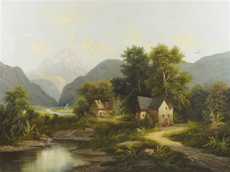Maestro del XIX secolo "Grande paesaggio di montagna" cm. 95x128 - olio su...