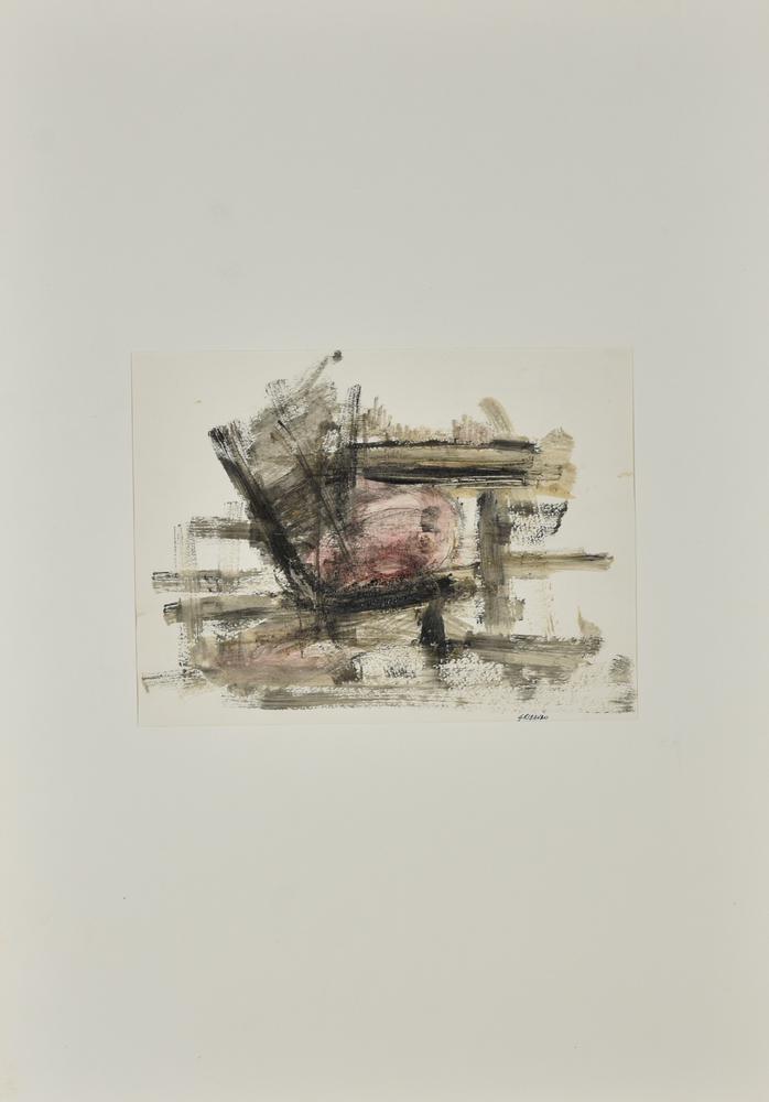 Ezio Gribaudo COMPOSIZIONE tecnica mista su carta, cm 24x30 sul fronte: firma