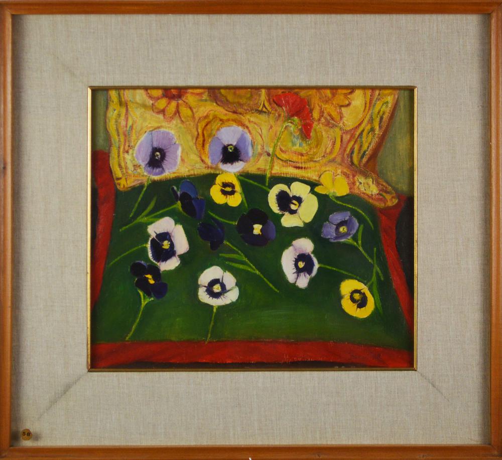 Antonio Fasan LE VIOLE DEL PENSIERO olio su tavola, cm 33x37 firma e data sul...