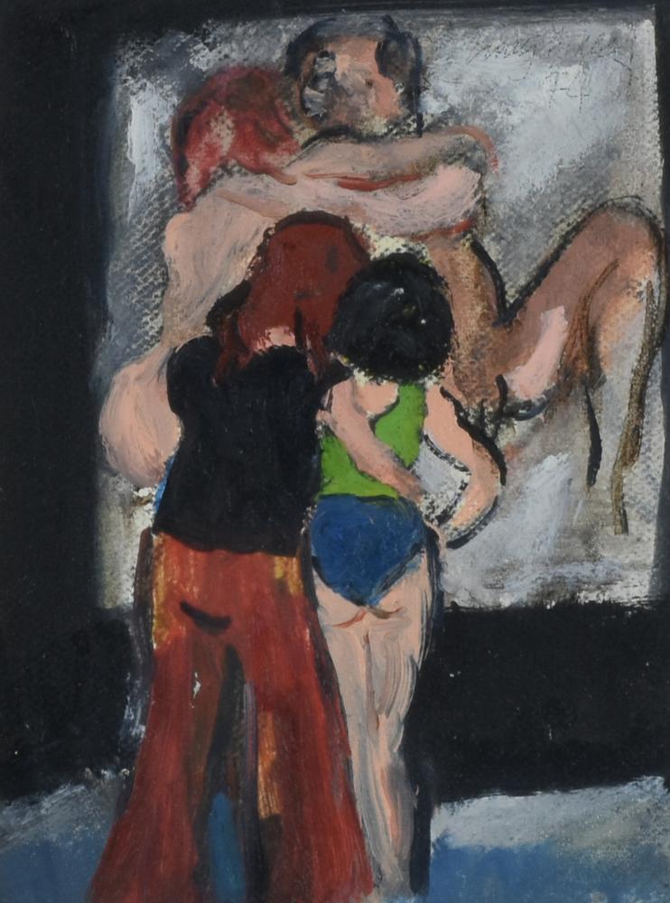 Walter Piacesi AMANTI olio su tela, cm 20x16 firma e data sul retro: firma e...