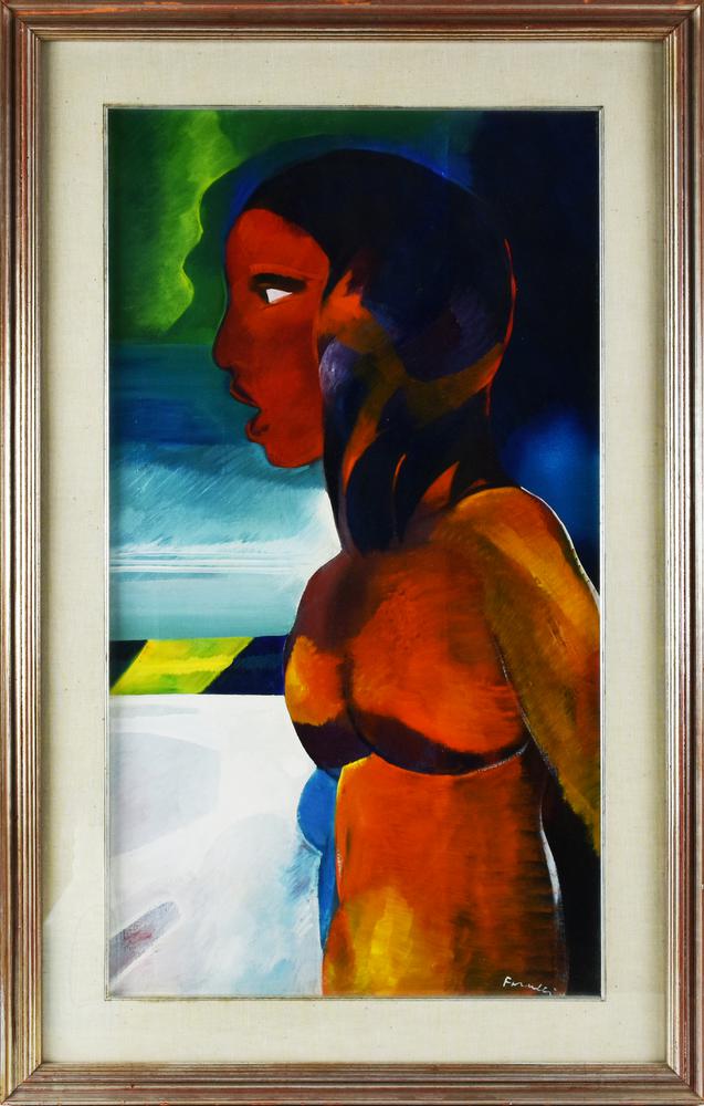 Fernando Farulli FIGURA FEMMINILE olio su tela, cm 90x51 firma sul retro:...