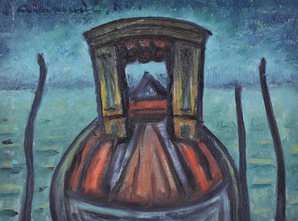 Enrico Allimandi LA GONDOLA olio su cartone telato, cm 30x40 sul fronte:...